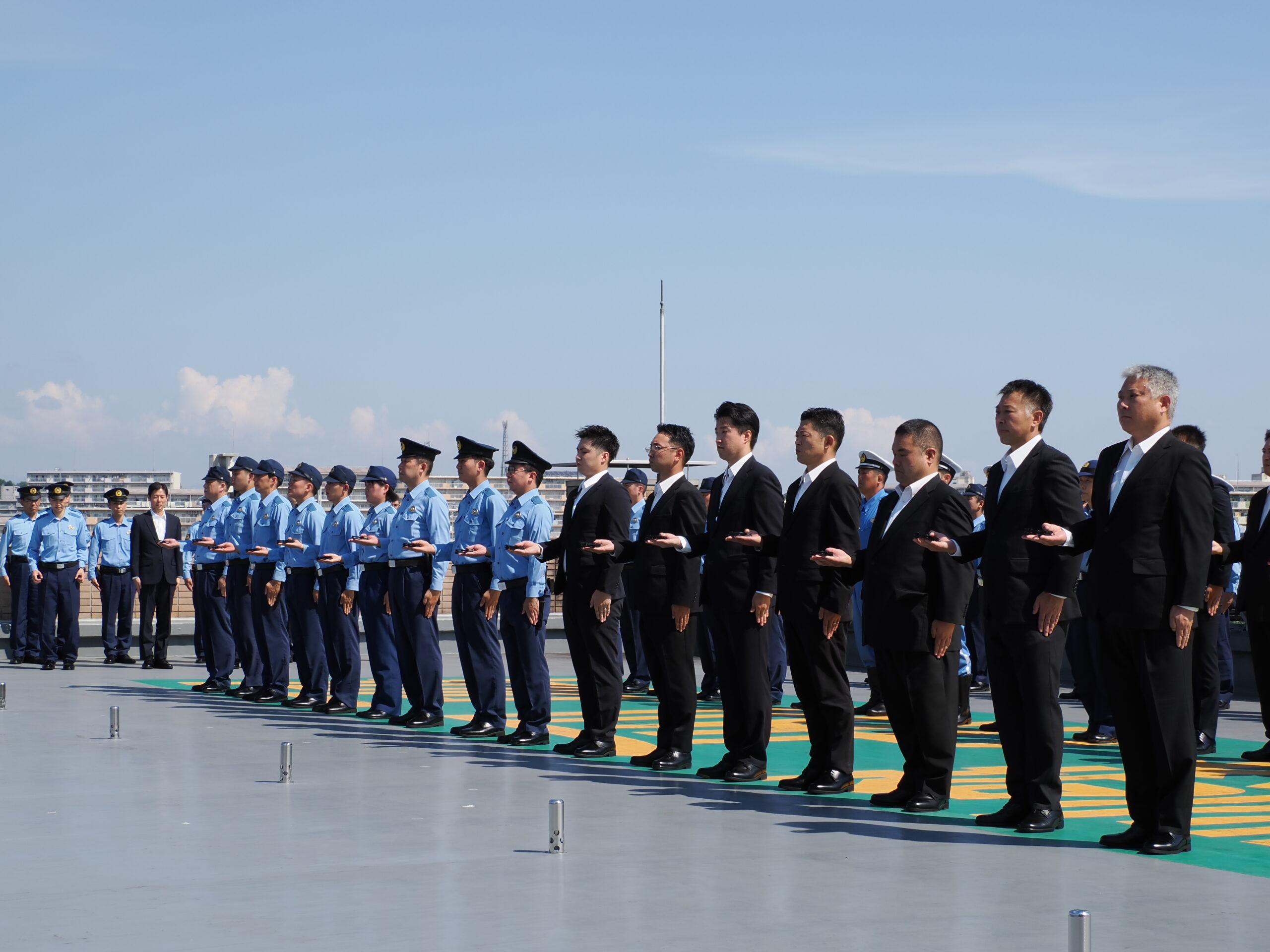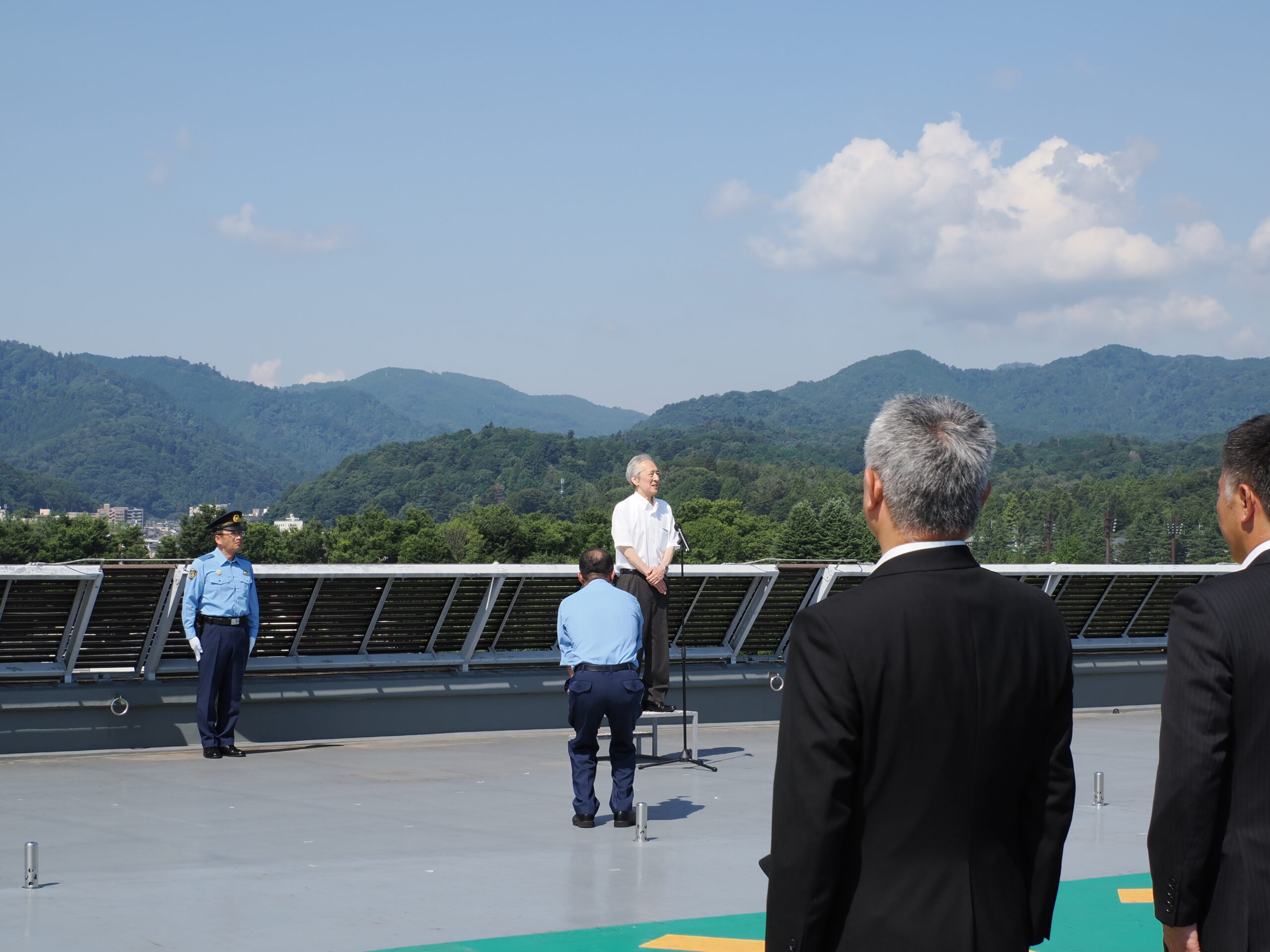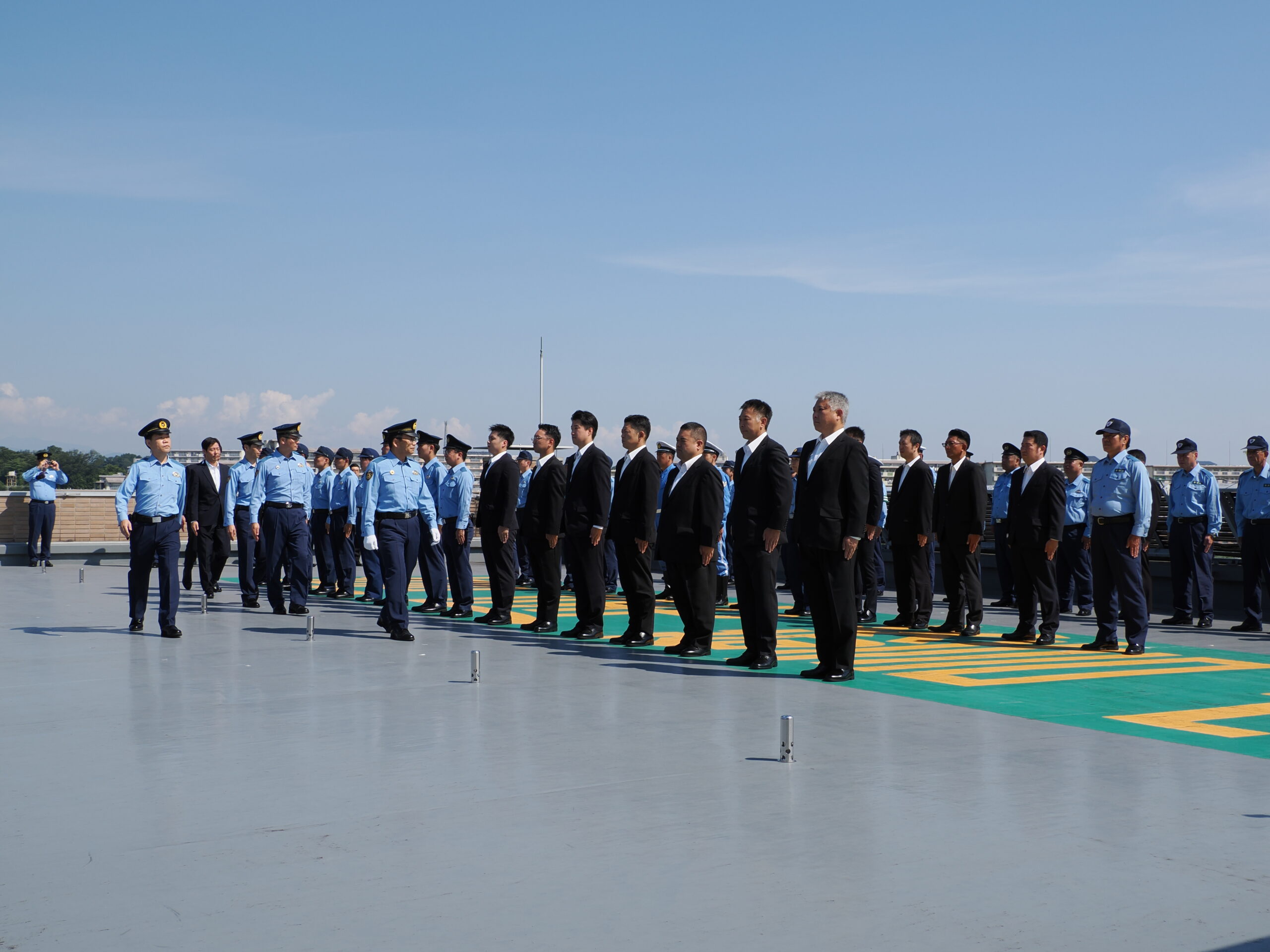 高尾警察署の朝の点呼に参加 2025/07/22 令和7年7月22日火曜日 田部井署長より、高尾警察署の朝の点呼に参加して、署員を激励してほしいとのご案内を頂いたので、 田中会長・山田副会長・石堂副会長の3名で伺いました。