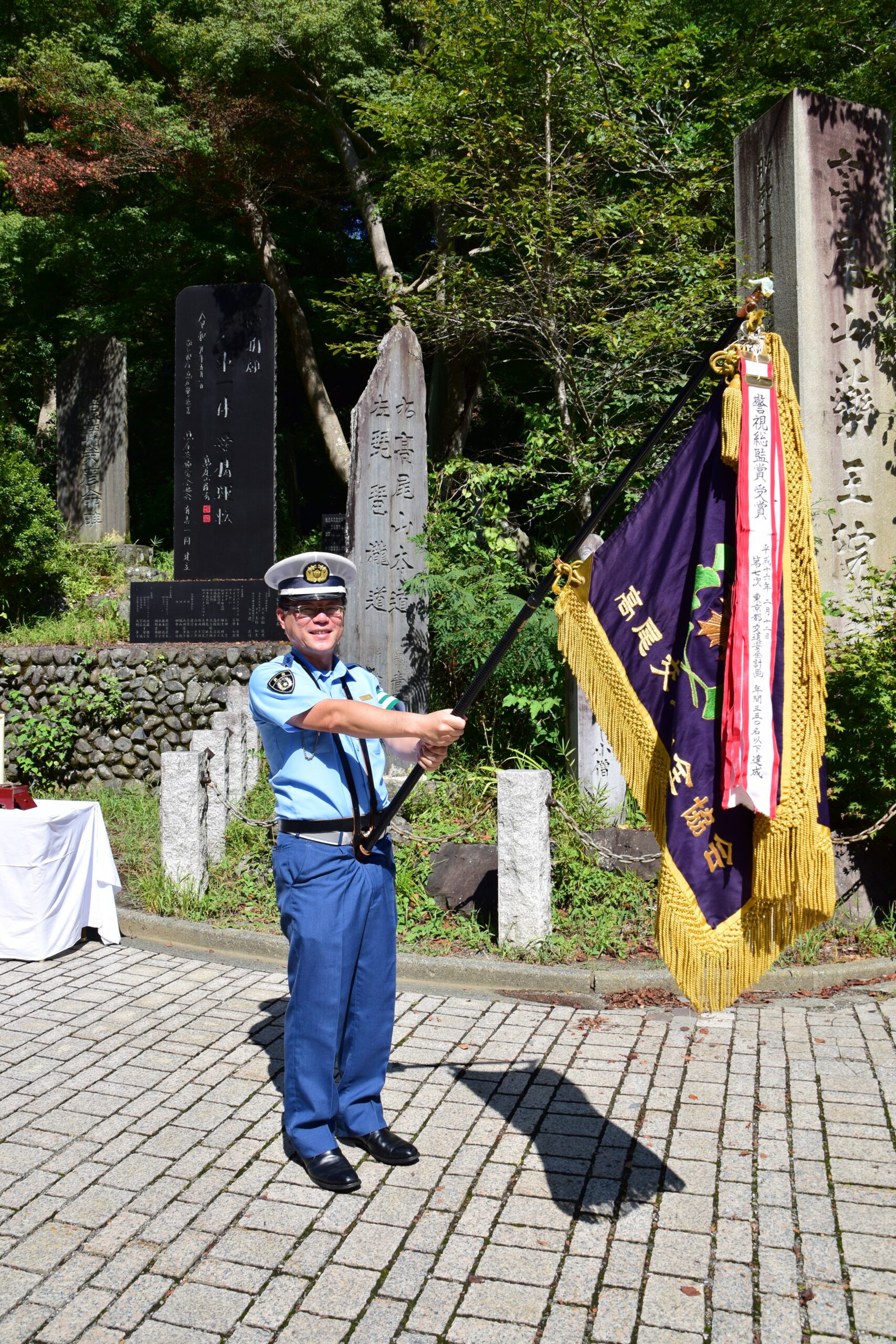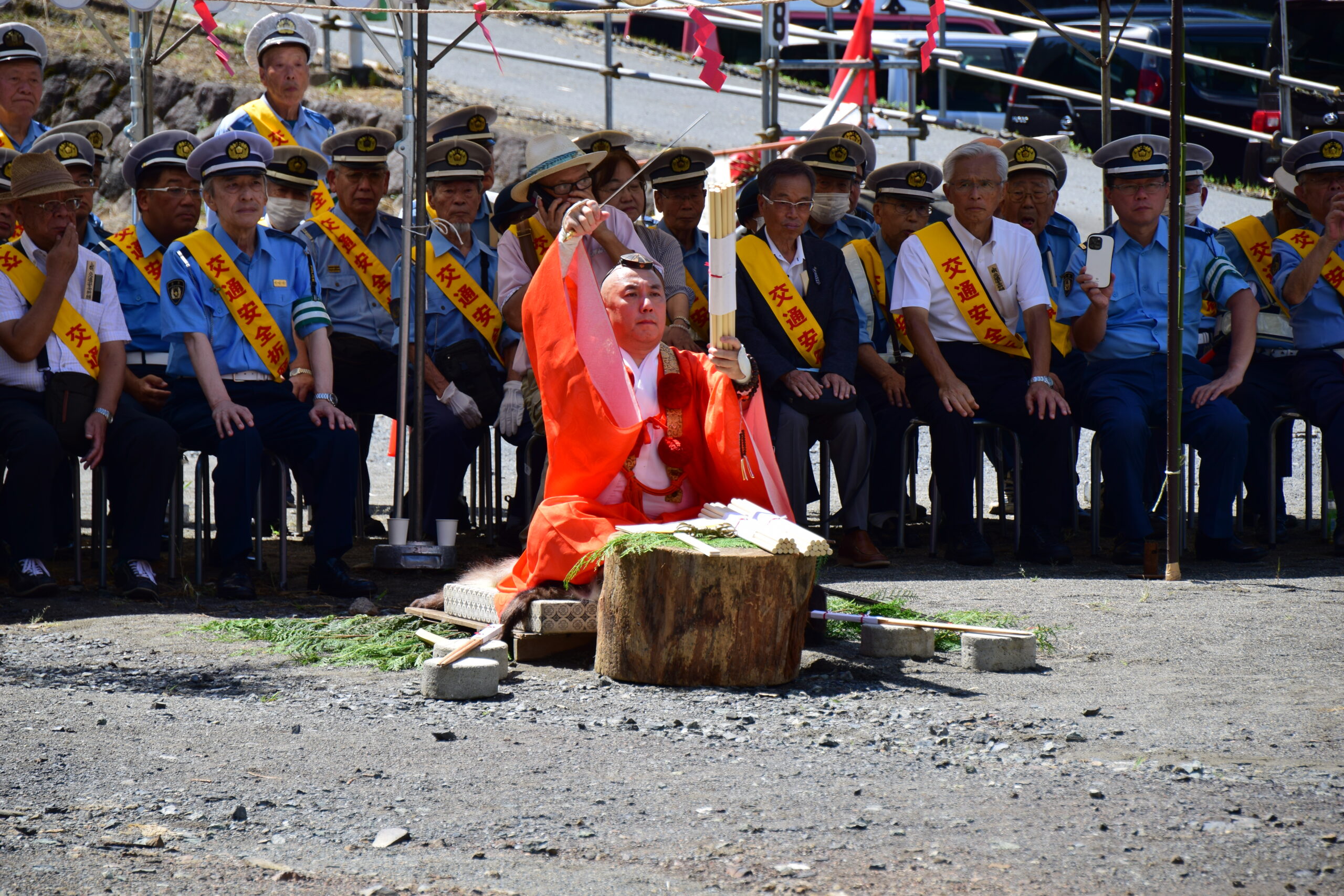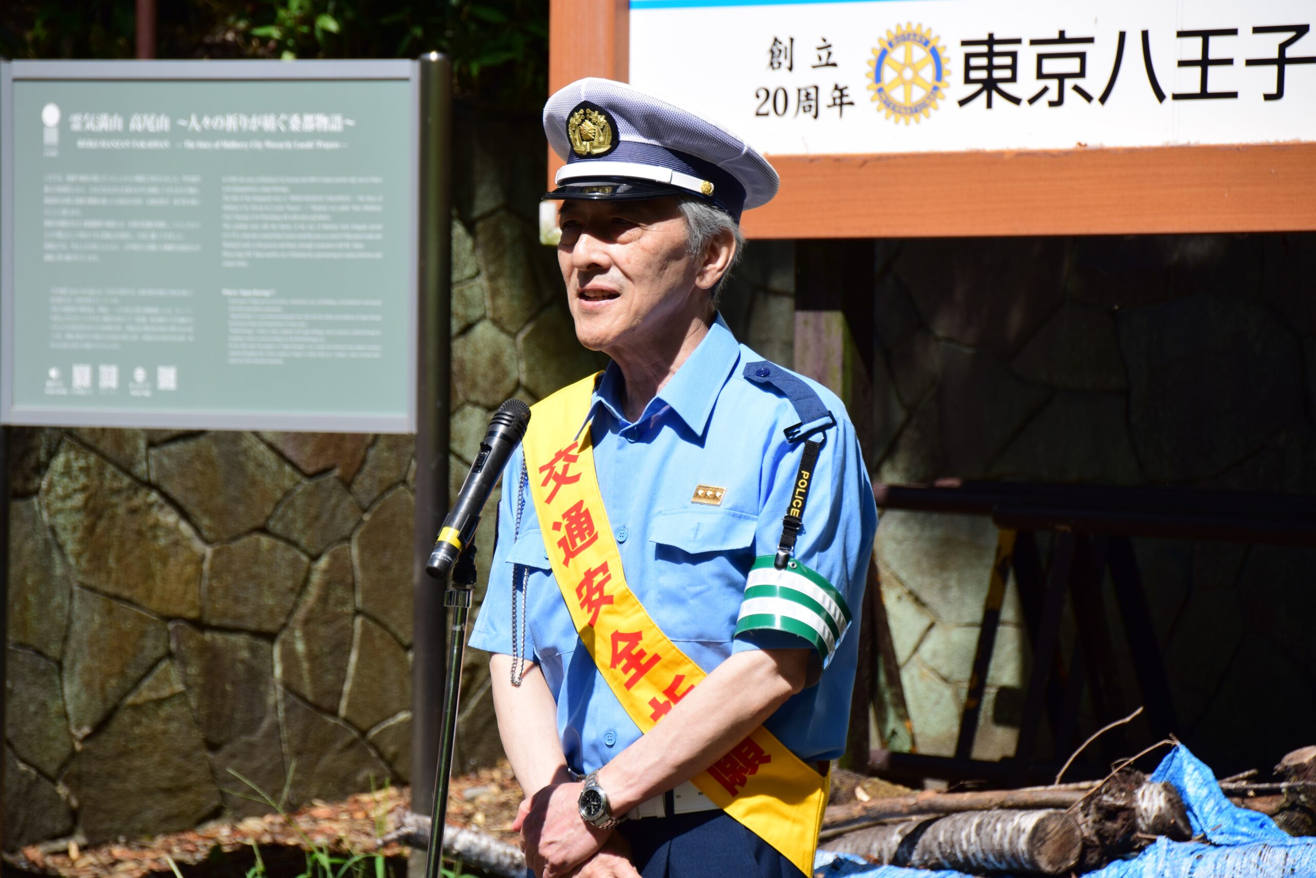 台風一過の晴天の日、高尾交通安全協会三役をはじめ、来賓の皆様・交通指導員・交通少年団・セントベル幼稚園の皆様ご参加の中